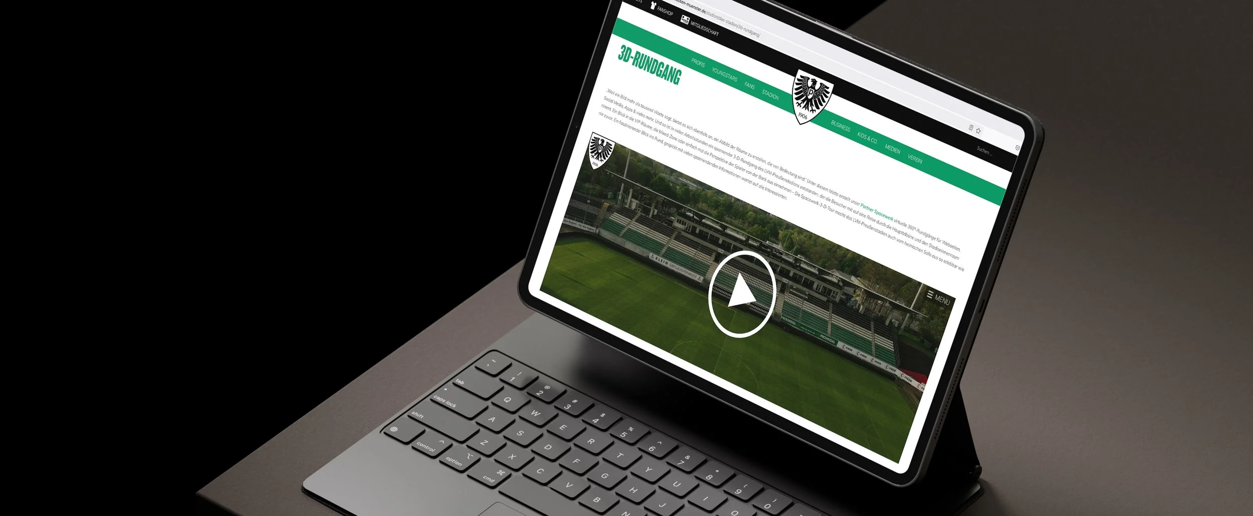 Mit dem virtuellen Rundgang eröffnet Preußen Münster eine neue Dimension der Fanbindung. Die digital begehbare Stadiontour ermöglicht es Nutzern, sich frei durch die Tribünen, Kabinen oder VIP-Bereiche zu bewegen – einfach per Mausklick.